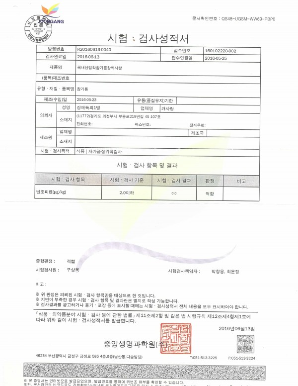 참기름 | 5월 국산 참기름 품질검사 시험성적서 페이지 정보 작성자 깨사랑 작성일16-07-21 16:28 조회2,089회 댓글0건 관련링크 이전글 다음글 목록 본문 5월 국산 참기름 품질검사 시험성적서 댓글목록 등록된 댓글이 없습니다. 이전글 다음글 목록