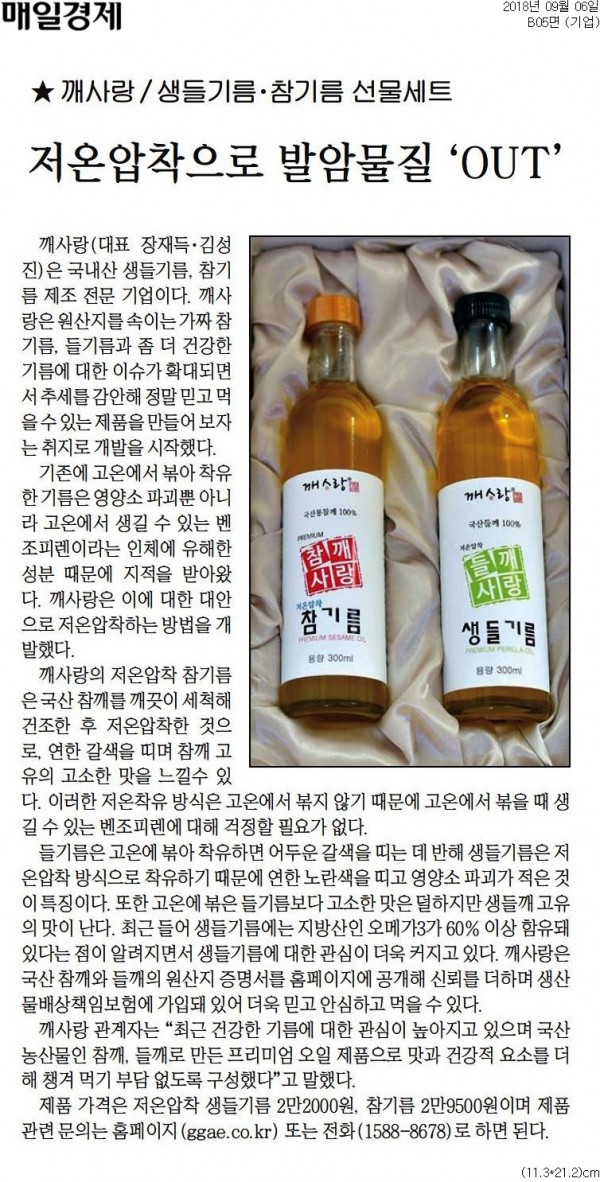 [매일경제] 깨사랑 / 생들기름·참기름 선물세트